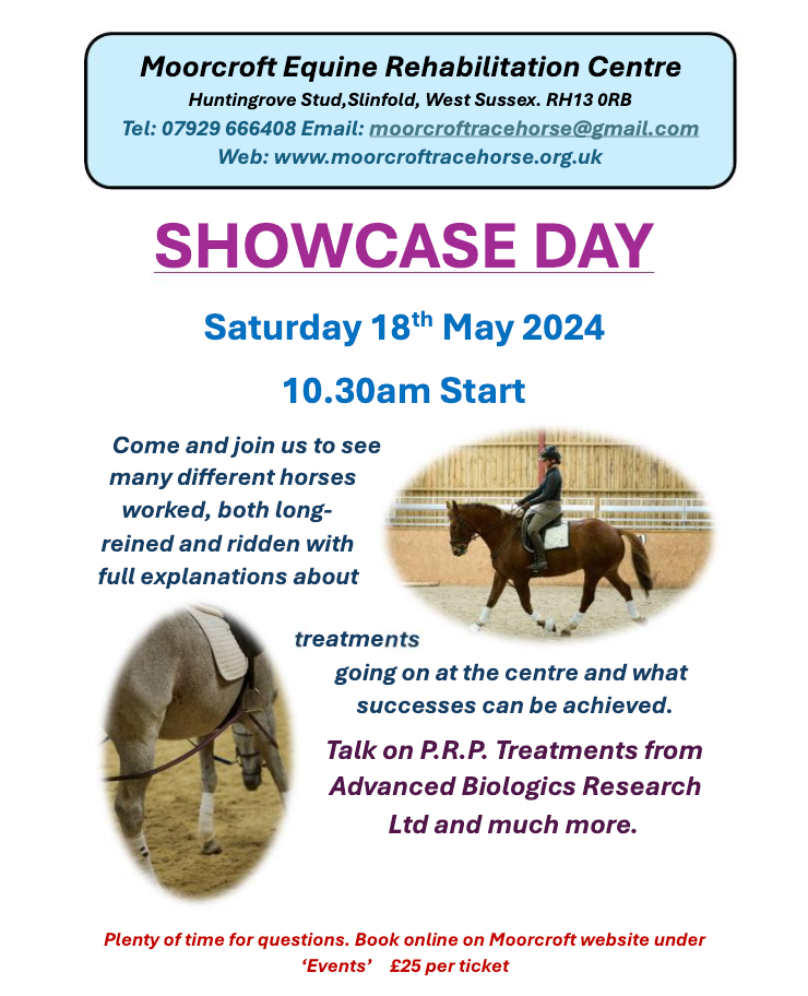 Please join us at Moorcroft Equine Rehabilitation Centre on Saturday 18 May 2024 to see what happens at the Centre.