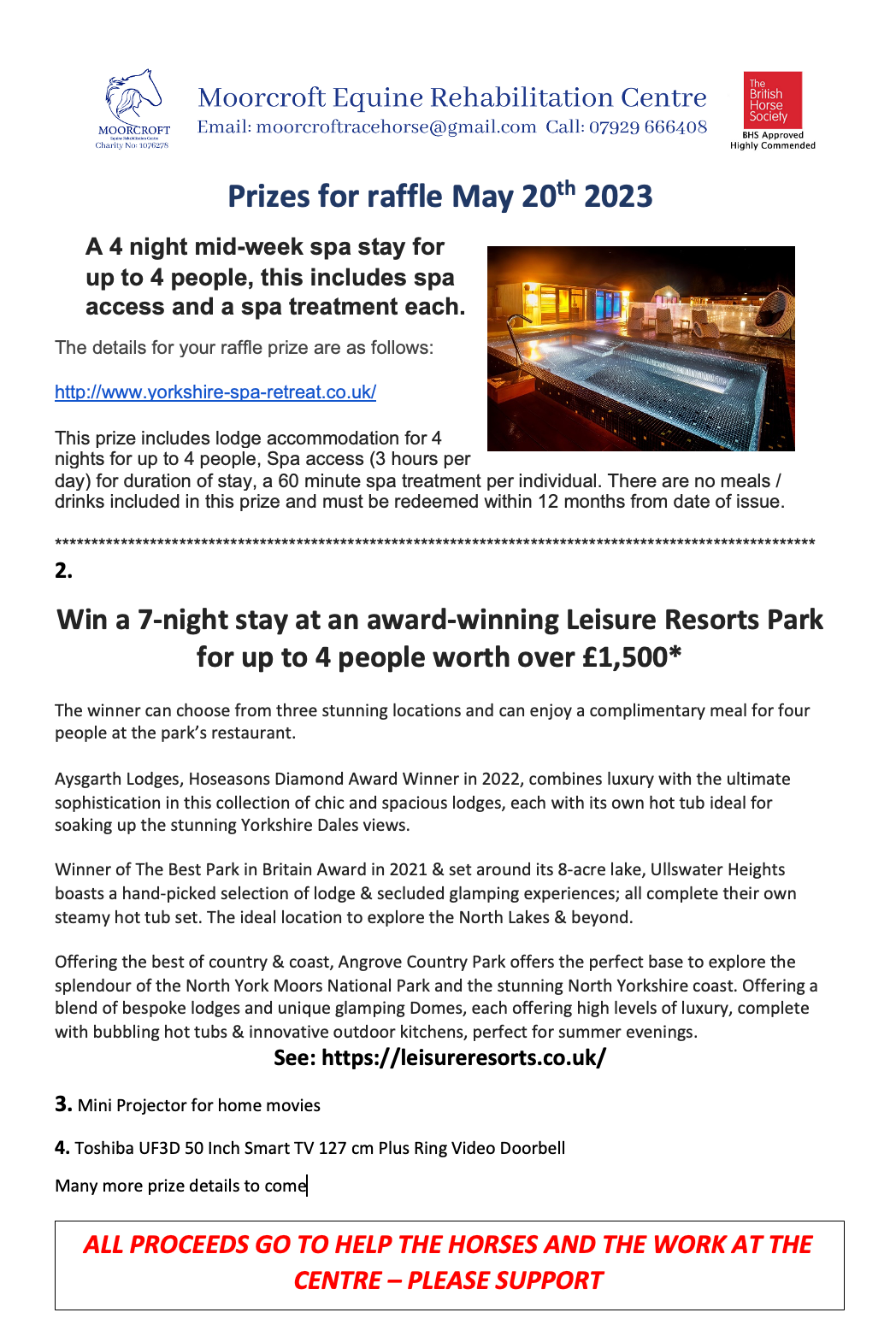 Moorcroft Equine Rehabilitation Centre is fundraising for the charity. All proceeds go to help the horses at the charity. We rely heavily on fundraising to ensure that we can continue helping retraining and rehabilitating the horses in our care.