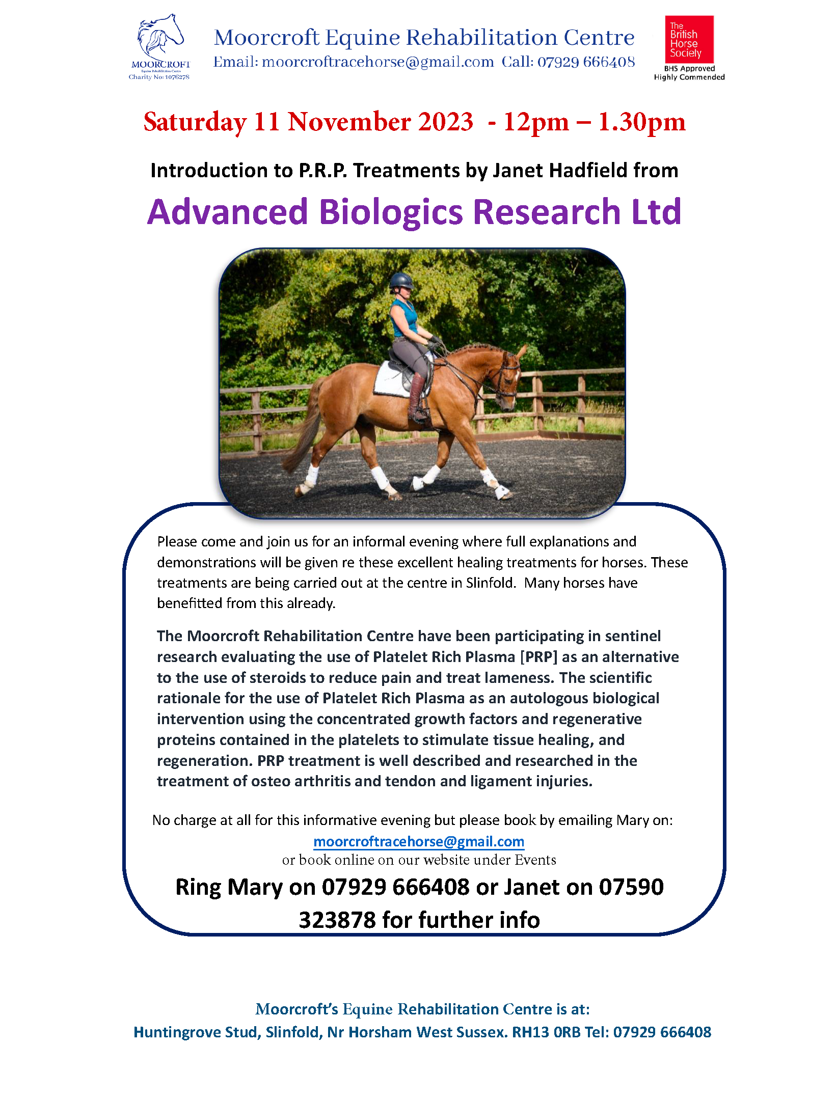 OR email Mary at Moorcroft (moorcroftracehorse@gmail.com) to reserve your place.