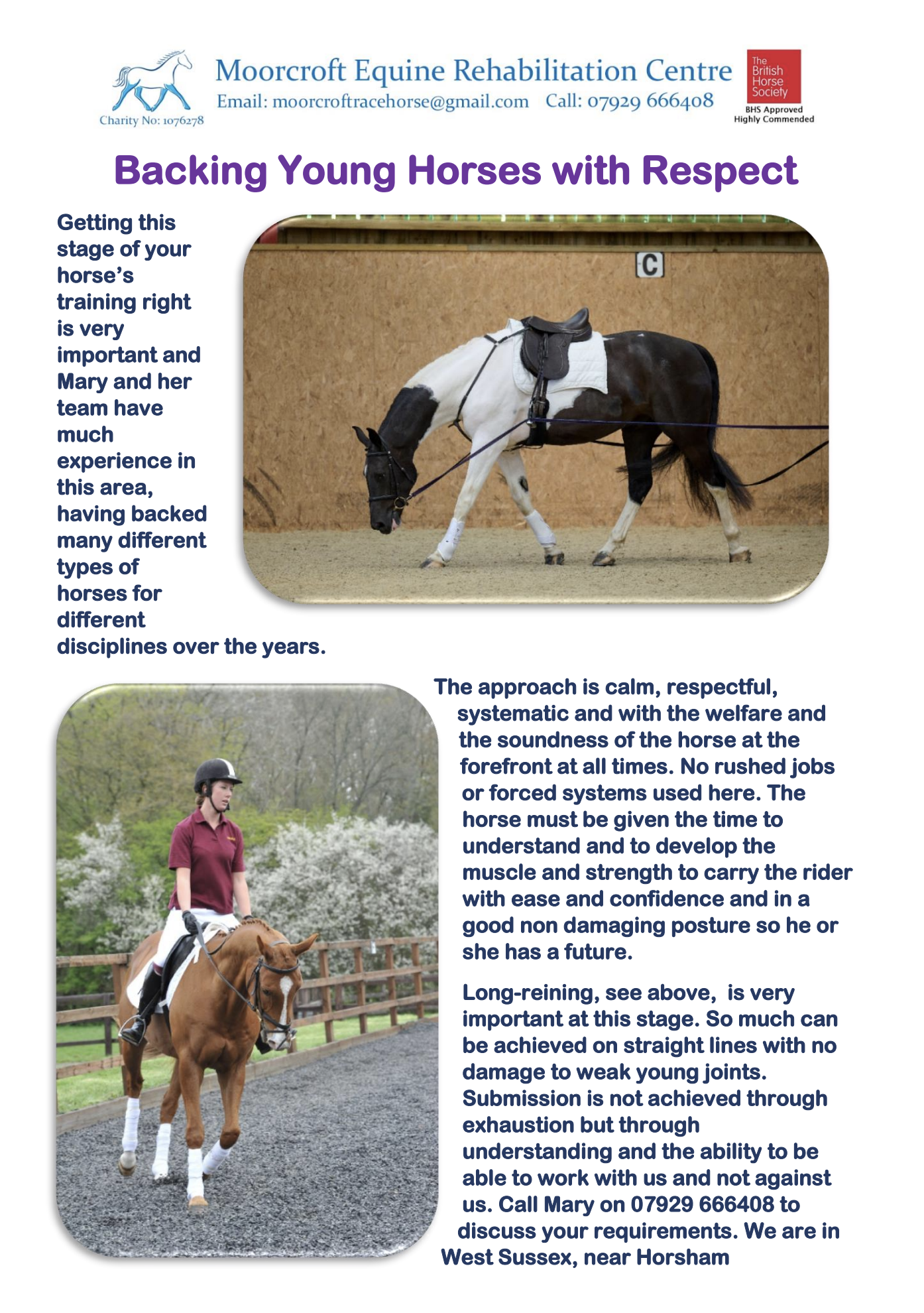 Getting this stage of your horse's training right is very important. Mary and her team have a wealth of experience in this area and having backed many different types of horses for different disciplines over the years, they will be able to assist.