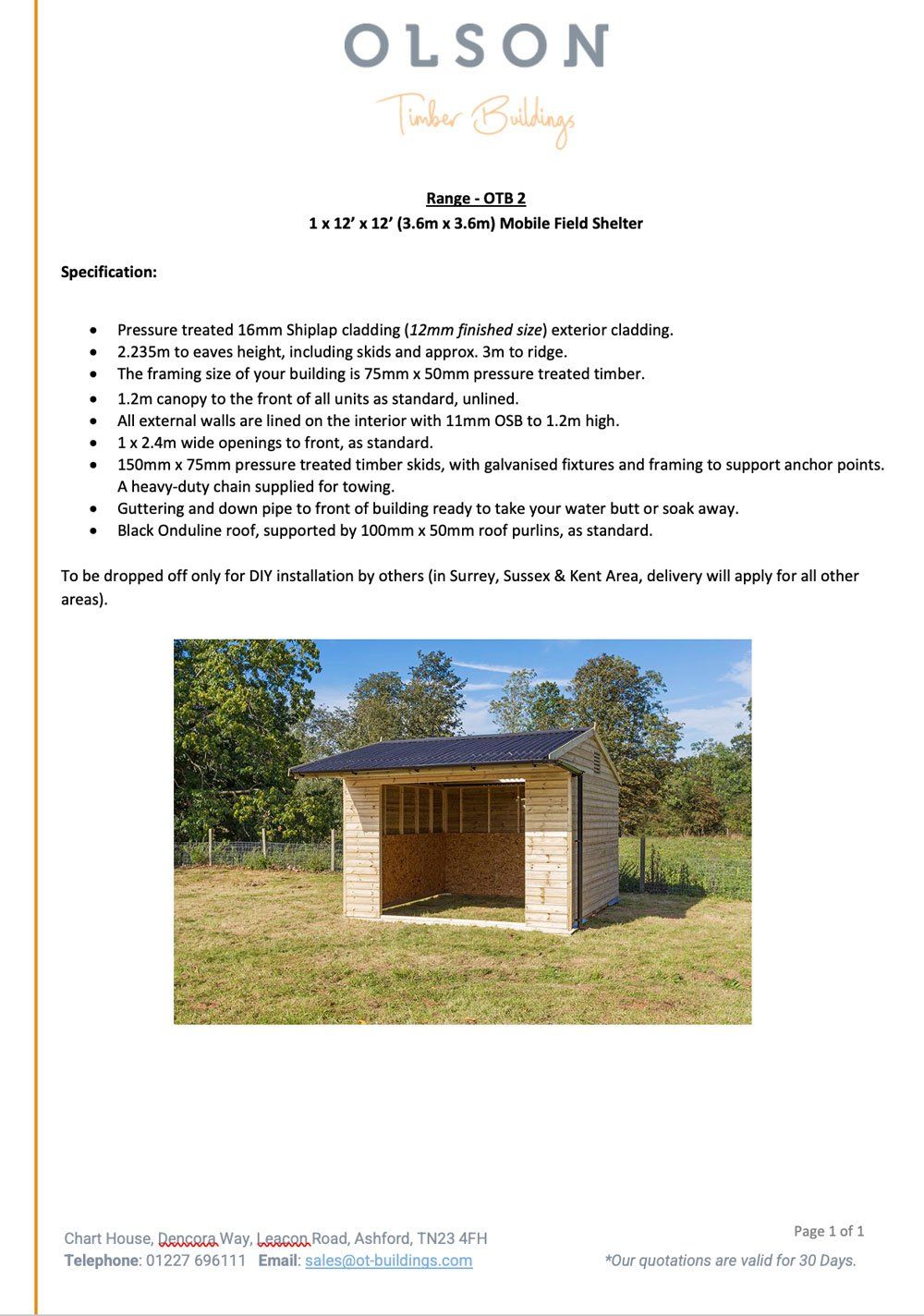 First prize is an amazing Mobile Field Shelter worth circa £2000.00 kindly donated by Olson Timber Buildings (see below).
