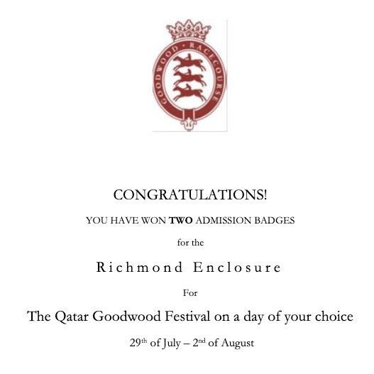- Two Admission Badges for the Richmond Enclosure at The Quatar Goodwood Festival