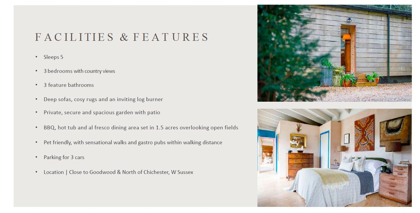 Notes of birdsong add to the prevailing sense of peace, but you’re closer to civilisation than you think. Beyond the surrounding farmland, it’s not far to the local pub (three of them, in fact), while the Goodwood Estate is less than ten minutes away by car, making this a fantastic countryside retreat for family adventures.